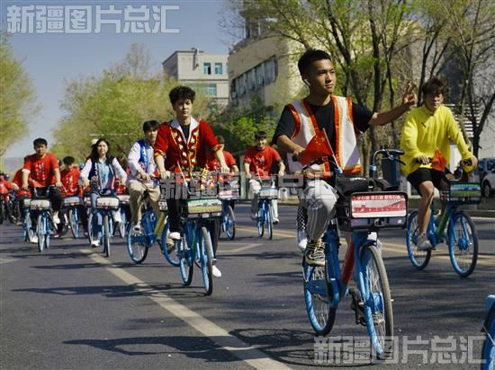 2023年5月10日,克拉玛依市第42个民族团结进步教育月活动启动仪式现场,近百位骑行爱好者参加民族团结进步模范花车大巡游活动。
