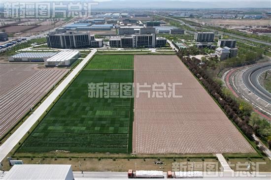 九圣禾种业股份有限公司产业园科研创新基地展示区种植的农作物(2023年5月10日无人机拍摄)。该公司在全国建有15个育种中心,先后在全国建立50万亩稳定的制种基地、15条现代化种子加工生产线和配套仓储物流设施,各类种子生产加工能力达30万吨,产品销售覆盖18个省区。