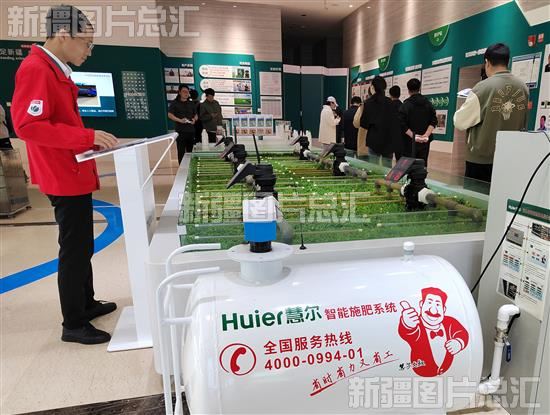 2023年5月9日,新疆慧尔农业集团股份有限公司工作人员在智慧农业展厅为观众展示智能施肥系统。该公司自主研发的生物有机环保液体水溶肥和智能施肥系统已在全疆示范推广300万亩,入选绿色制造系统集成项目和国家数字农业农村新技术新产品新模式优秀项目。