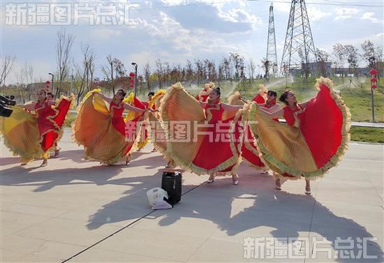 2023年5月9日,市民在昌吉头屯河生态治理项目庭州生态绿谷休闲跳舞。 该项目包括自然生态修复公园、城市康体休闲公园、工业遗址公园、城市庆典公园、文化公园,绿地率达87% 。