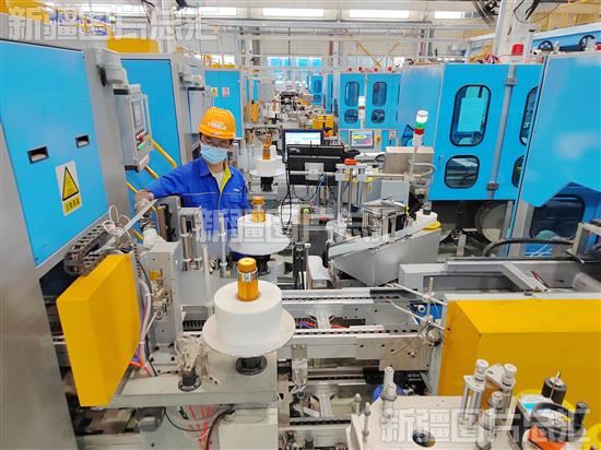 2023年5月10日,工作人员在位于昌吉国家高新技术产业开发区的特变电工智能电缆产业园数字化布电线车间生产线作业。该产业园占地面积550亩,年规划生产绿色建筑用阻燃、高可靠电线产品超50万公里,各类型号节能、环保、高可靠性电力电缆超2.5万公里。