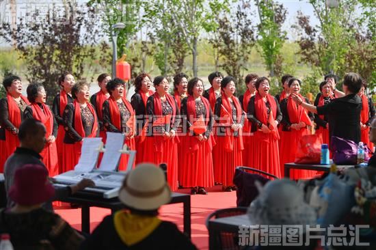 2023年5月9日,市民在昌吉头屯河生态治理项目庭州生态绿谷进行文艺活动。该项目包括自然生态修复公园、城市康体休闲公园、工业遗址公园、城市庆典公园、文化公园,绿地率达87% 。