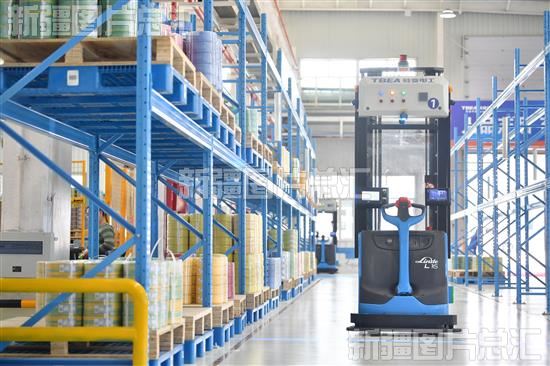 2023年5月10日,在昌吉国家高新技术产业开发区的特变电工智能电缆产业园数字化布电线车间,AGV无人配送小车在进行物料转运。该产业园占地面积550亩,年规划生产绿色建筑用阻燃、高可靠电线产品超50万公里,各类型号节能、环保、高可靠性电力电缆超2.5万公里。