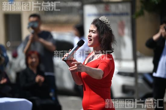 2023年5月18日,居民在知识竞赛间隙演唱红歌。
