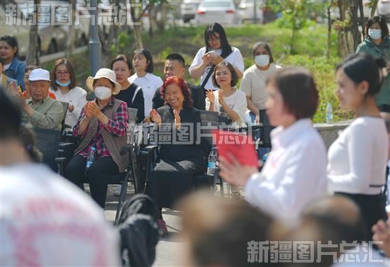 2023年5月18日,乌鲁木齐市天山区新华南路街道各社区居民为“强国复兴有我”党的二十大精神“一站到底”知识竞赛表现优异的参赛党员加油。