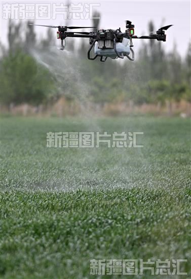 关键字:巴音郭楞蒙古自治州 小满 农事忙 小麦 田间地头 农林牧渔业 植保无人机 麦苗 农民 抢抓农时 喷施农药
