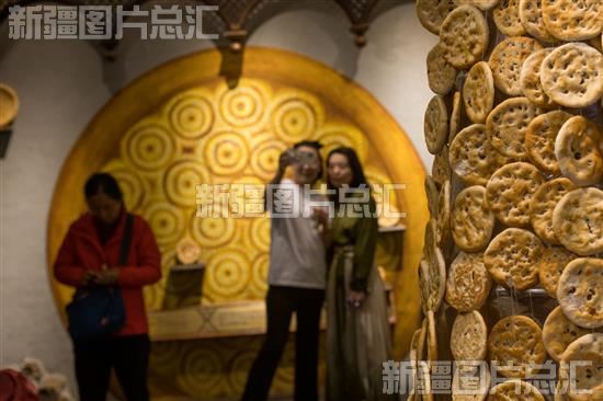 2023年5月21日,游客在新疆国际大巴扎景区馕文化园游玩。