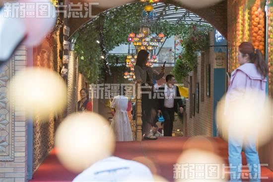 2023年5月21日,游客在新疆国际大巴扎景区游玩。