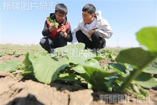 2023年5月10日,新疆生产建设兵团第六师101团青湖镇三连“两委”干部向种植户了解恰玛古的长势情况。