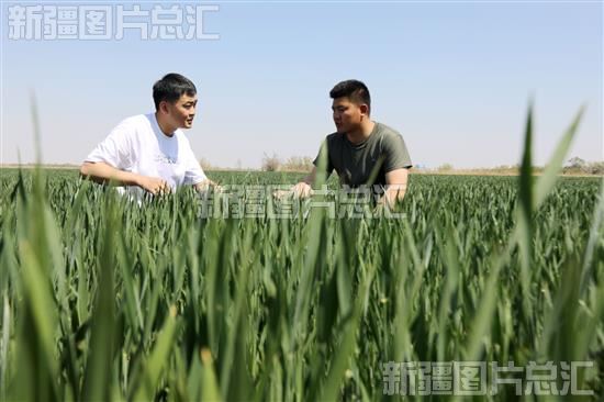 2023年5月10日,新疆生产建设兵团第六师101团青湖镇三连“两委”向种植户了解冬小麦长势情况。