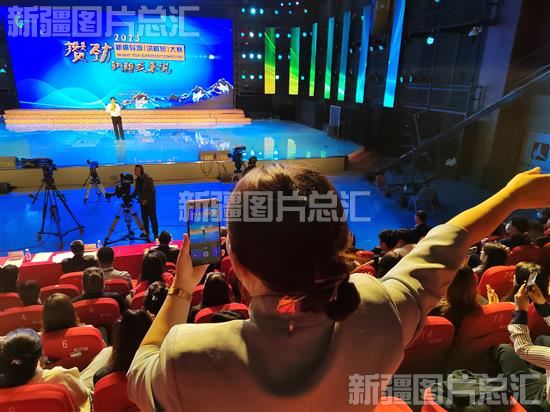 2023年5月22日,观众在“攒劲新疆我来说”2023新疆导游(讲解员)大赛现场为才艺展示的选手加油。