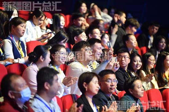 2023年5月22日,观众在“攒劲新疆我来说”2023新疆导游(讲解员)大赛现场为选手加油。