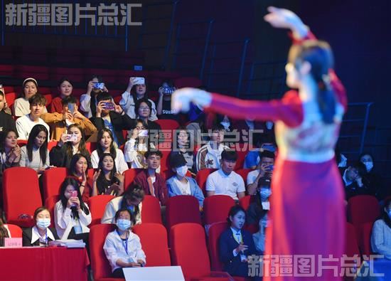 2023年5月22日,参赛选手在“攒劲新疆我来说”2023新疆导游(讲解员)大赛现场进行才艺展示。