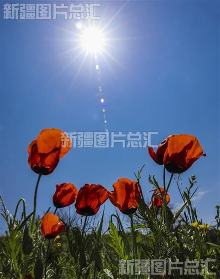 进入五月,新源县草原的天山红花进入盛开期,吸引众多游客观赏、拍照、打卡。天山红花主要原产地在伊犁河谷,5月至6月开放。