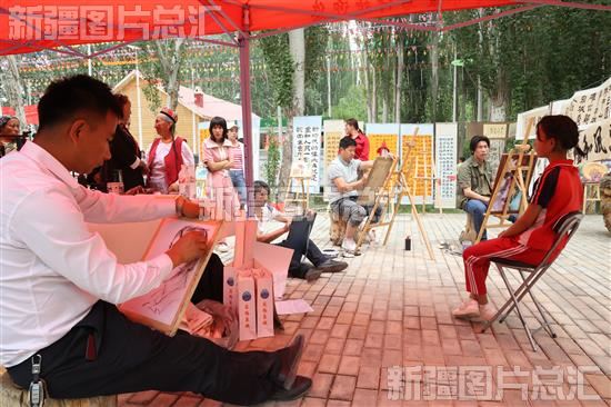 2023年5月19日,在乌什县依麻木镇托万克麦盖提村生态园,乌什县美术家在给学生教写生。