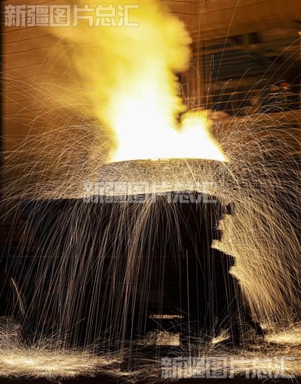 关键字:伊犁哈萨克自治州 伊犁州 新源县 则克台镇 新疆伊犁钢铁有限责任公司 钢铁 炼钢厂 炼钢车间 工人 冶炼 铁水 钢水 钢花四溅 繁星闪耀 钢花 钢花图案