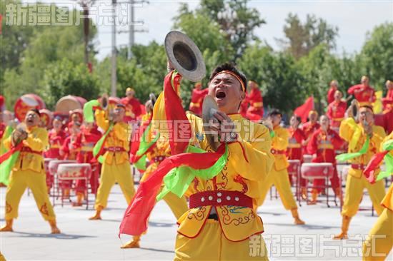 当日,新疆生产建设兵团第六师五家渠市举办第五届“鼓舞师市”威风锣鼓大赛,来自师市各团场的14支锣鼓代表队1300余名鼓手参赛。铿锵的锣鼓、磅礴的气势展示了团场职工群众昂扬向上的精神风貌。