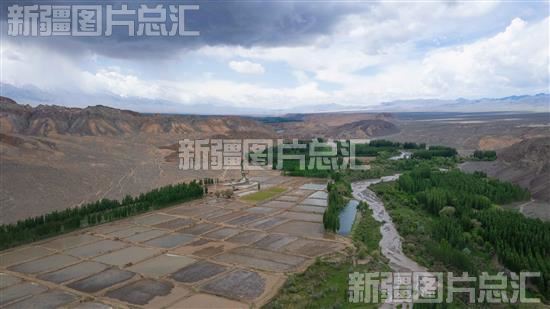 2023年5月22日,俯瞰精河县优质高产香稻绿色生产基地(无人机拍摄)。