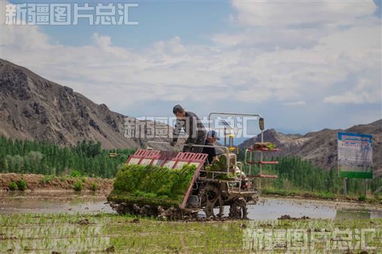 关键字:博尔塔拉蒙古自治州 博州 精河县 农业 农田 新疆农业科学院 生物技术研究所 水稻新品种 种植户 员工 驾驶 水稻插秧机 插秧 种植 优质水稻