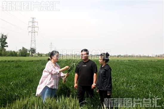 2023年5月25日,六师五家渠市101团青湖镇三连“两委”和种植户一起查看冬小麦长势情况。