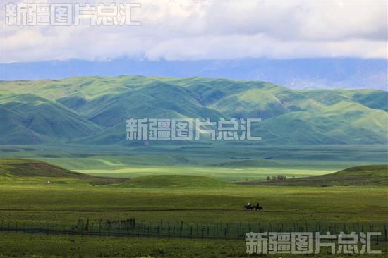 极目远眺,绿茵茵的草地覆盖着连绵起伏的山峦,蜿蜒伸展。