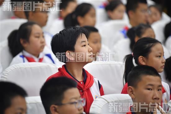 2023年5月24日,学生代表在乌鲁木齐高新区(新市区)青少年模拟法庭启动仪式现场聆听模拟审判。