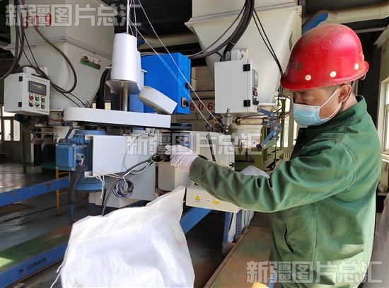 2023年5月18日,乌鲁木齐市餐厨废弃物处理厂工作人员将有机肥料装袋。