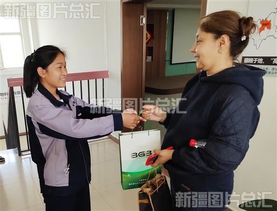 2023年5月18日,乌鲁木齐市餐厨废弃物处理厂工作人员给参观者赠送有机肥料和科普资料。
