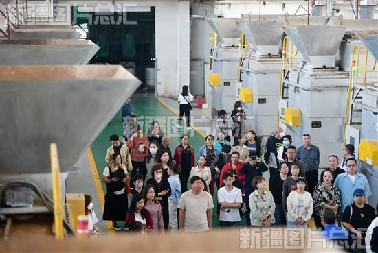 2023年5月18日,居民和社区干部在乌鲁木齐市餐厨废弃处理厂生产车间参观。