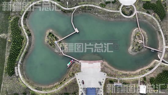 2023年5月18日,俯瞰尉犁县一处人工湖(无人机拍摄)。