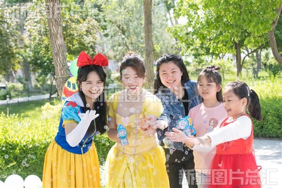2023年5月27日,孩子们在玩吹泡泡游戏。