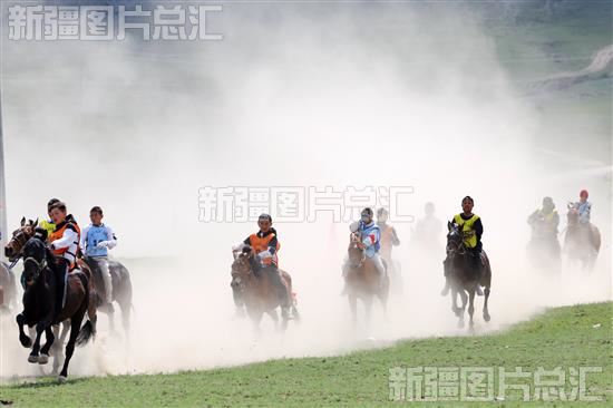 ?2023年5月27日,骑手在阿勒泰市汗德尕特乡赛马场竞技。