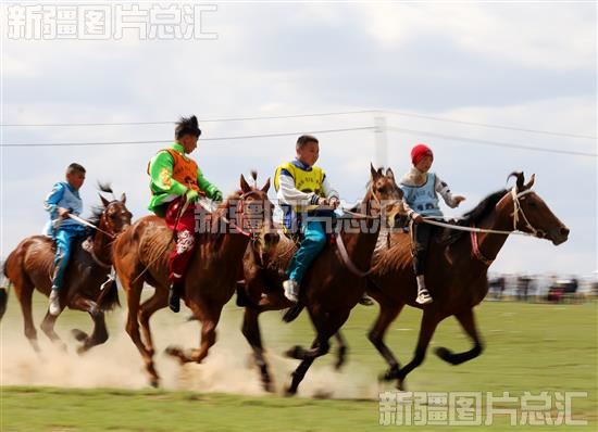 ?2023年5月27日,骑手在阿勒泰市汗德尕特乡赛马场竞技。