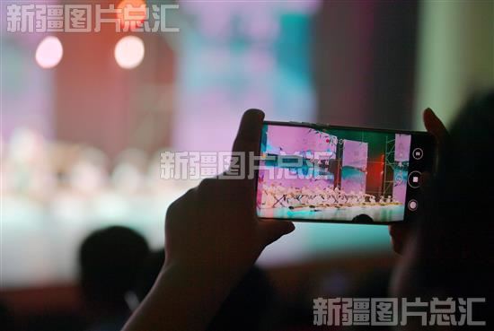 2023年5月28日,观众拍摄昌吉市小朋友们表演的古筝齐奏《咏春》。