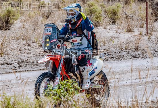 2023年5月28日,2023中国环塔(国际)拉力赛进行了第6赛段——SS6沙海老兵赛段,15号摩托车选手向附近观看的关注竖起大拇指致意。。