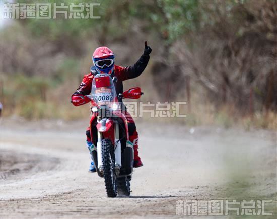 2023年5月28日,2023中国环塔(国际)拉力赛进行了第6赛段——SS6沙海老兵赛段,一位选手在该赛段终点冲刺。