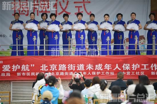 2023年5月28日,乌鲁木齐高新区(新市区)北京路街道辖区民间文艺团体,在北京路街道未成年人保护工作站揭牌仪式上进行模特展示。