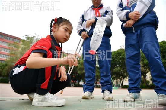 2023年5月28日,乌鲁木齐高新区(新市区)北京路街道辖区小朋友在北京路街道未成年人保护工作站揭牌仪式参加互动游戏。