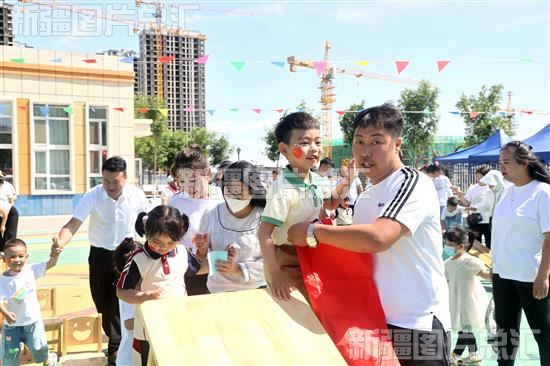 2023年5月30日,小朋友在进行“大手牵小手”亲子活动。