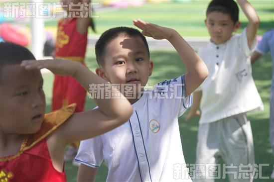 2023年5月30日,阿拉尔市塔里木第二幼儿园的小朋友们在排练足球舞蹈节目。