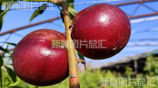 2023年5月29日,在察布查尔锡伯自治县良繁场蔬菜种植基地油桃大棚里,饱满光亮果实挂满枝头。