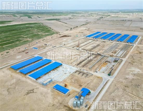 2023年5月25日,在尉犁县兴平镇达西村新疆羌都天保羊业40万只种羊养殖项目施工现场。