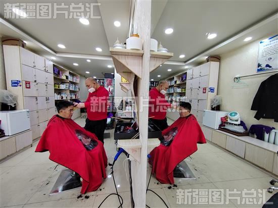 2022年11月28日,市民在乌鲁木齐市经一路一家理发店理发。