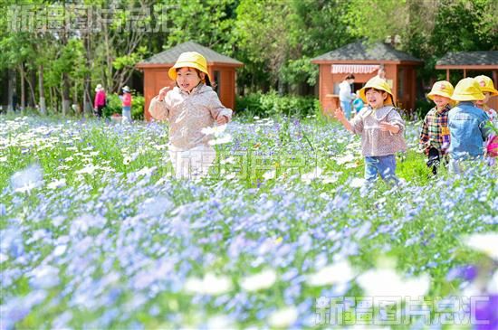 2023年6月1日,小朋友在位于昌吉市的新疆农业博览园花海中游玩。?