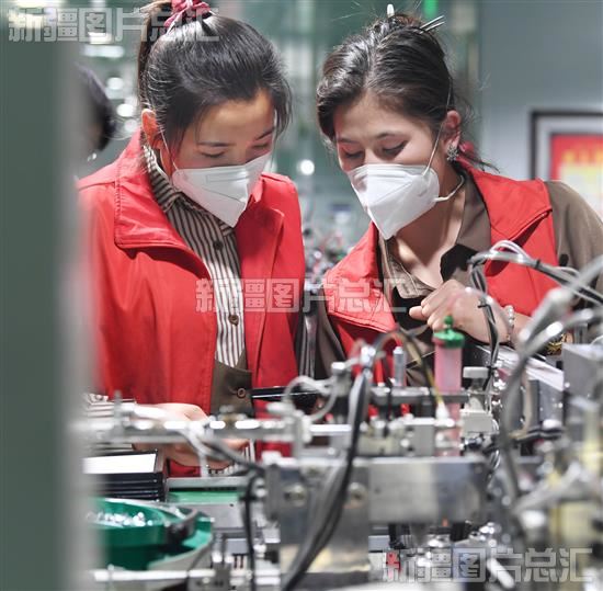 2023年6月1日,工人在和田瓴海电子有限责任公司车间生产电子产品部件。