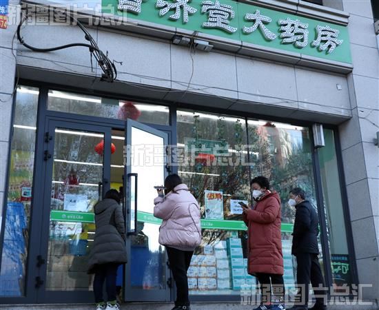 2022年11月26日,在乌鲁木齐市水磨沟区南湖路附近,居民排队选购药品。
