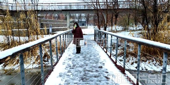2022年11月24日,居民在察布查尔锡伯自治县新城区公园小桥上拍照。