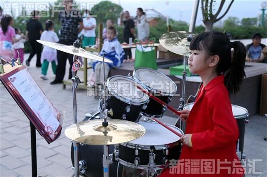 2023年6月2日,小朋友在和静县东归生态公园进行乐器演奏。