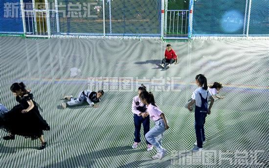 当日傍晚,市民来到该公园陪孩子一起游览,体验多彩的游乐活动,享受夏日周末快乐时光。