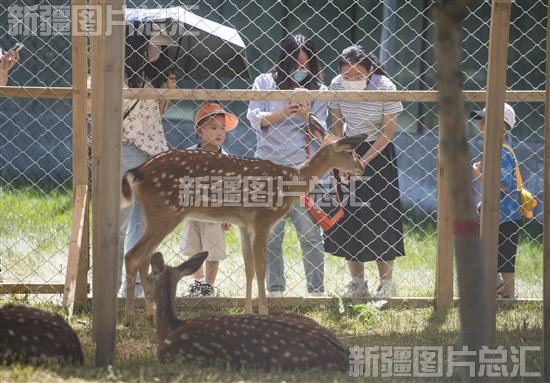 2023年6月4日,游客在鹿园参观。